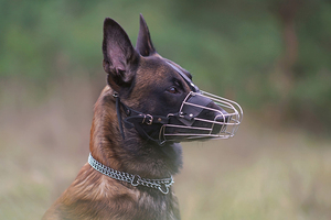 Намордник представляет собой те же самые переплетенные между собой прутья, но из металла. Преимуществом такого аксессуара будет прочность, а недостатком тяжелый вес. Кроме того, что собака может испытывать неудобство, она может им больно ударить. Такие намордники целесообразно приобретать для опасных собак.