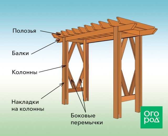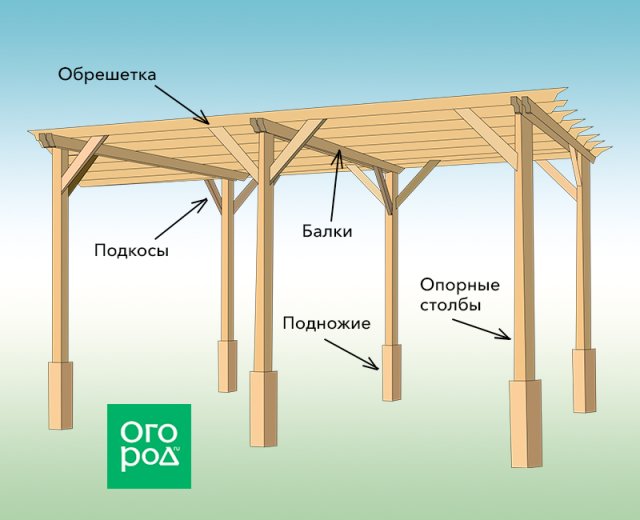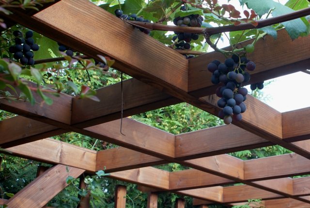 В целом, пергола-беседка должна быть сделана более основательно – чтобы выдерживать распределенную нагрузку «крыши» и вес растений, которые со временем ее обовьют.
