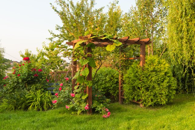 Пергола в виде арки – отличное решение для оформления входной зоны в сад или внутренний дворик. Она не только станет опорой для вьющихся растений, но и создаст тенистый уютный уголок, где захочется проводить время. Возможно, в будущем вы дополните такую конструкцию скамейкой или чайным столиком, а пока разберемся, как изготовить перголу-арку своими руками.