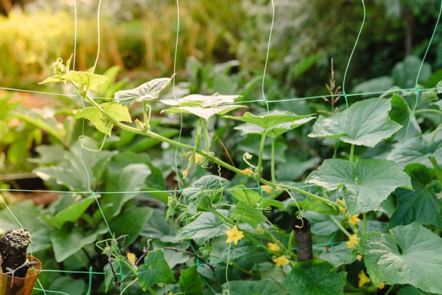 Совсем другое дело – подвязанные к шпалере или сетке лианы с обрезанными на удобную длину стеблями. Такие огуречные кусты не тратят силы на отрастание ненужных побегов, а направляют их на формирование и созревание урожая. И это не единственный плюс: