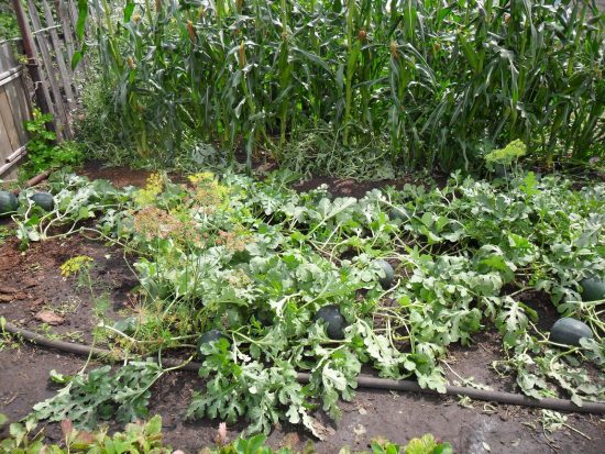 В зарослях бахчи можно что-то и проглядеть. Поэтому за месяц до наступления в регионе холодных ночей (ниже +15 ⁰C), примерно в середине-конце июля, грядку посещают для формирования ещё раз и прищипывают все видимые верхушки плетей.