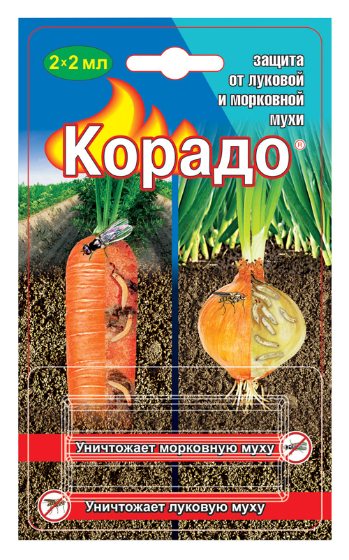 Одно из таких – “Корадо”. Препарат создан специально для борьбы с морковной, луковой мухой и их личинками.