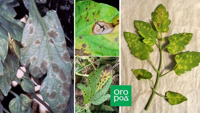 Сперва желтовато-бурые или светло-зеленые (часто окаймленные желтым), а затем темнеющие пятна на листьях томатов – чаще всего признак кладоспориоза, еще одного грибкового заболевания. Пятна со временем не только темнеют, но с обратной стороны листьев пространство под ними покрывается светло-серым налетом, который позже становится коричневым. Листья в итоге скручиваются и засыхают. Развитию болезни способствует теплый и влажный микроклимат.