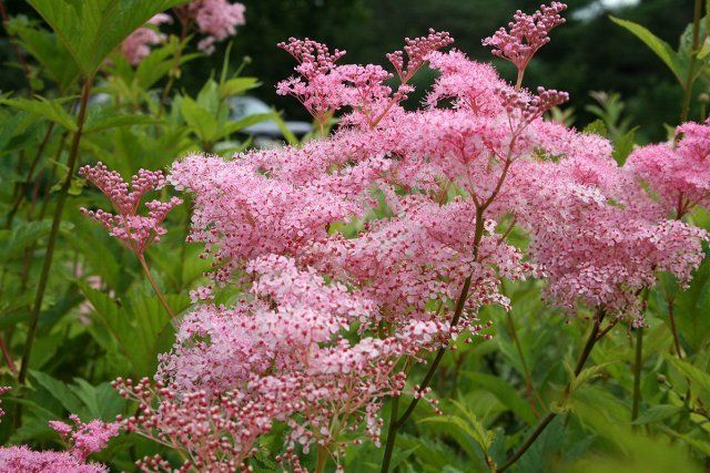 В летнем саду весьма привлекательны щитковидно-метельчатые соцветия таволги. Они бывают желтовато-белые, розовые, красные. Из этих цветочков можно приготовить чай, который незаменим в период заболевания ОРЗ и при гриппе.