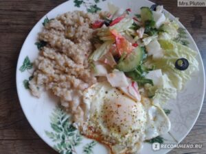 Сытный завтрак. Овсянка (геркулес), яйцо и салат.