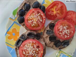 Перекус. Хлебцы др. Корнер с куриным паштетом, помидорами, кунжутом и маслинами