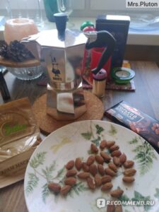 Обычно это кофе дома или на работе- 1 раз в день. Сыр, орехи, фрукт/сухофрукт. Иногда бутеры — хлебцы с чем-нибудь.