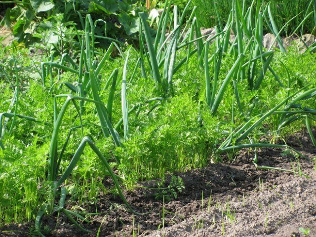 Лук и морковь рекомендуется сажать рядом не только потому, что эти культуры благотворно влияют друг на друга. А еще они компактно располагаются на грядке