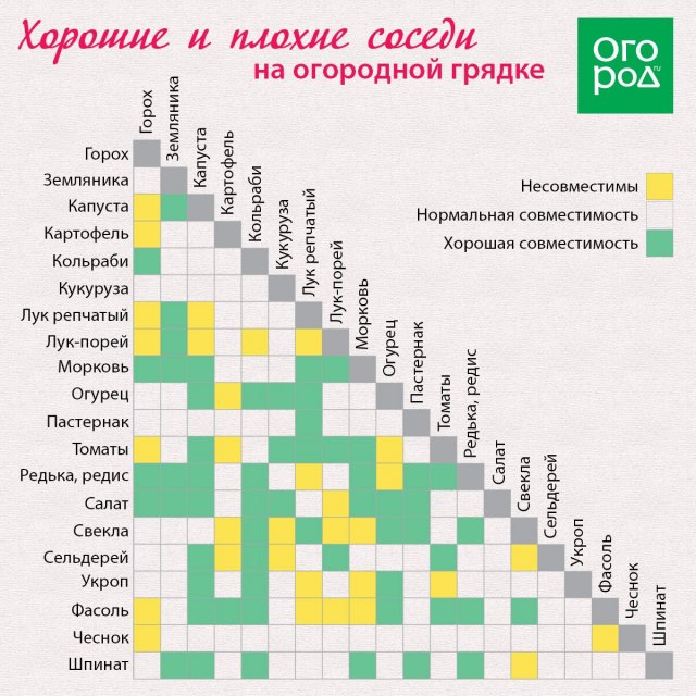 Среди других подобных антагонистов, плохо совместимых на одной грядке можно выделить следующие неудачные сочетания: