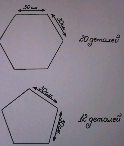 Выкройка для изделия в виде футбольного мяча