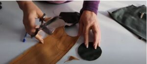 Приготовила кожаные кружки. Пришивать к коврику можно вручную, выбрав для этого любой шов, который нравится. Из ниток подойдёт ирис.