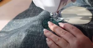 Следующий этап — сделала круг из джинсы для изнаночной стороны, сострочила эти две детали вместе.